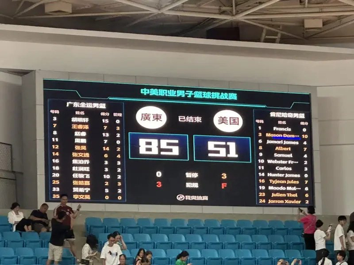 广东全运男篮以85-51大胜美国肯尼哈奇男篮。
